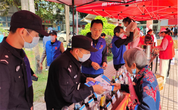 活動(dòng)現(xiàn)場(chǎng),黨員和志愿者們精神飽滿,分工協(xié)作,互相配合,搭建起禁毒宣傳、垃圾分類、便民理發(fā)、健康檢查等展位,為轄區(qū)居民提供各類便民服務(wù)。